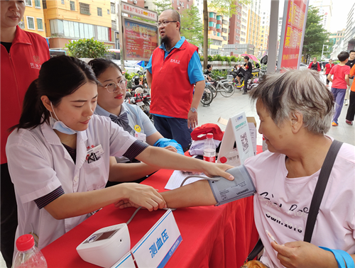 中共党员、深圳健安医院检验科蒙英凤医生为社区居民测血糖